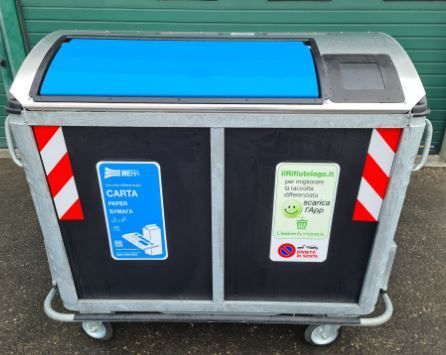 I cassonetti per la raccolta differenziata sono dotati di coperchio realizzato con telaio in acciaio e tamponamento in lega di alluminio. Il coperchio è verniciato a polveri poliesteri del colore a Vs. scelta. Le bocche di conferimento sono idonee alle diverse tipologie di rifiuto da conferire. Ampie scritte per una chiara identificazione all’uso preposto.