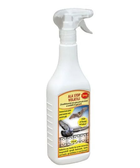 Liquido pronto uso a base di componenti attivi sgraditi ai volatili. È sufficiente irrorare la soluzione sulle superfici di interesse per tenere lontani piccioni, storni, eccetera.